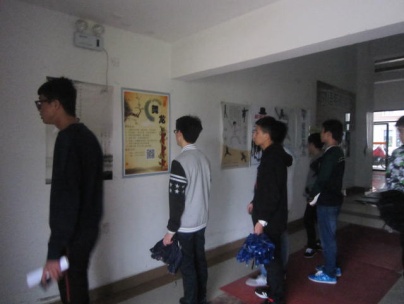 当天下午三点四十五分,活动正式展开。本次活动分为四个小组,并为每组安排一名组长。分工明确后,组长带领组员前往校园中每个场所调查校园使用汉字情况,在张贴有海报和宣传栏处寻找不规范用字。