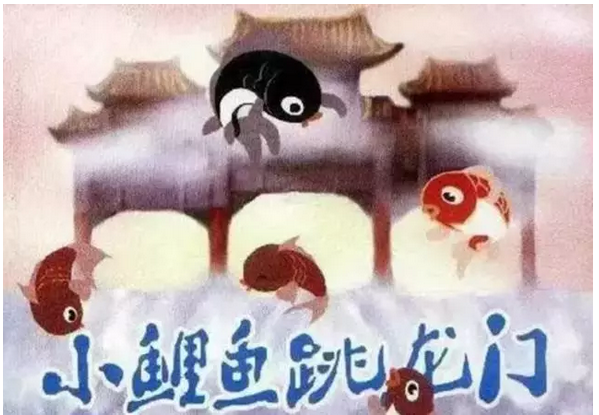 上美厂的《小鲤鱼跳龙门》里,小鲤鱼们听了鲤鱼奶奶讲的故事,去寻找龙门,却误将水坝当成了龙门,但是小鲤鱼们发现水坝后面的风景也非常好——这个故事其实表达了我们的新生活比神话更美好的寓意。值得一提的是,《小鲤鱼跳龙门》于1959年获得了苏联第一届莫斯科国际电影节的动画片银质奖。