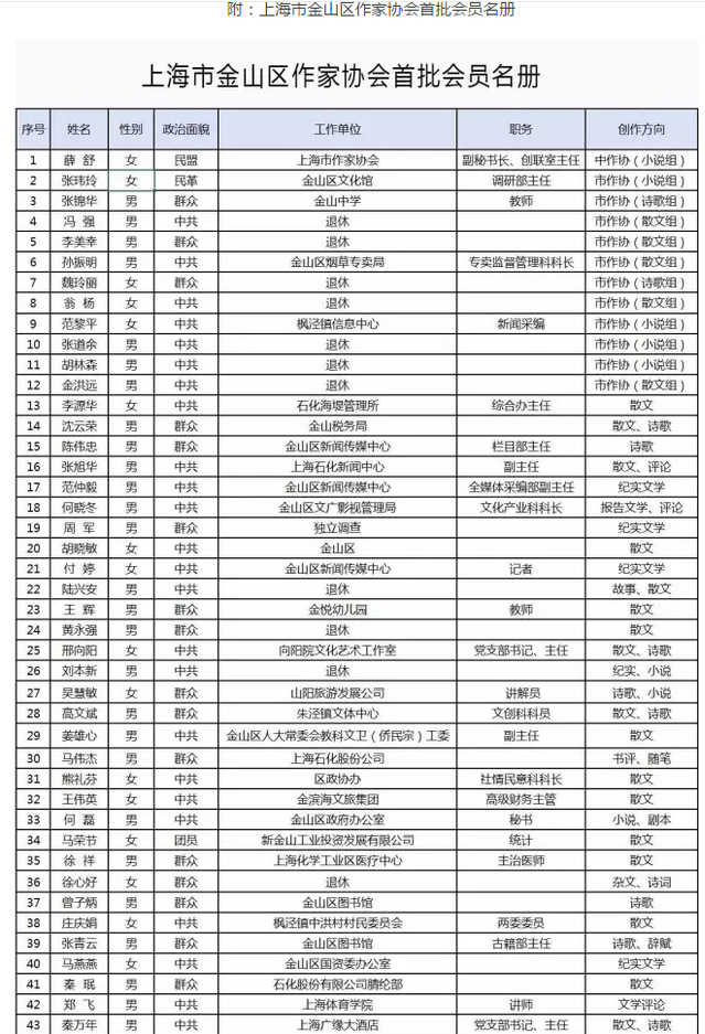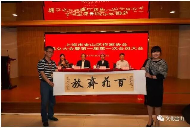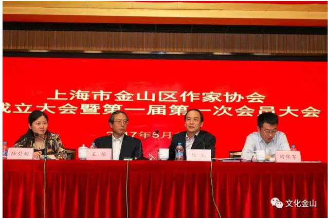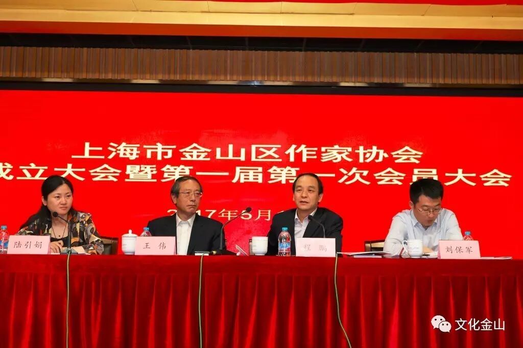 金山区作家协会成立大会暨第一届第一次会员大会于2017年5月15日下午在金山区文化馆三楼召开。上海市作家协会党组书记、副主席王伟,中共金山区委副书记程鹏,金山区文广影视局党委书记、局长、区文联主席陆引娟,金山区民政局副局长、社团局局长刘保军等领导以及有关单位及协会相关负责人一同出席。