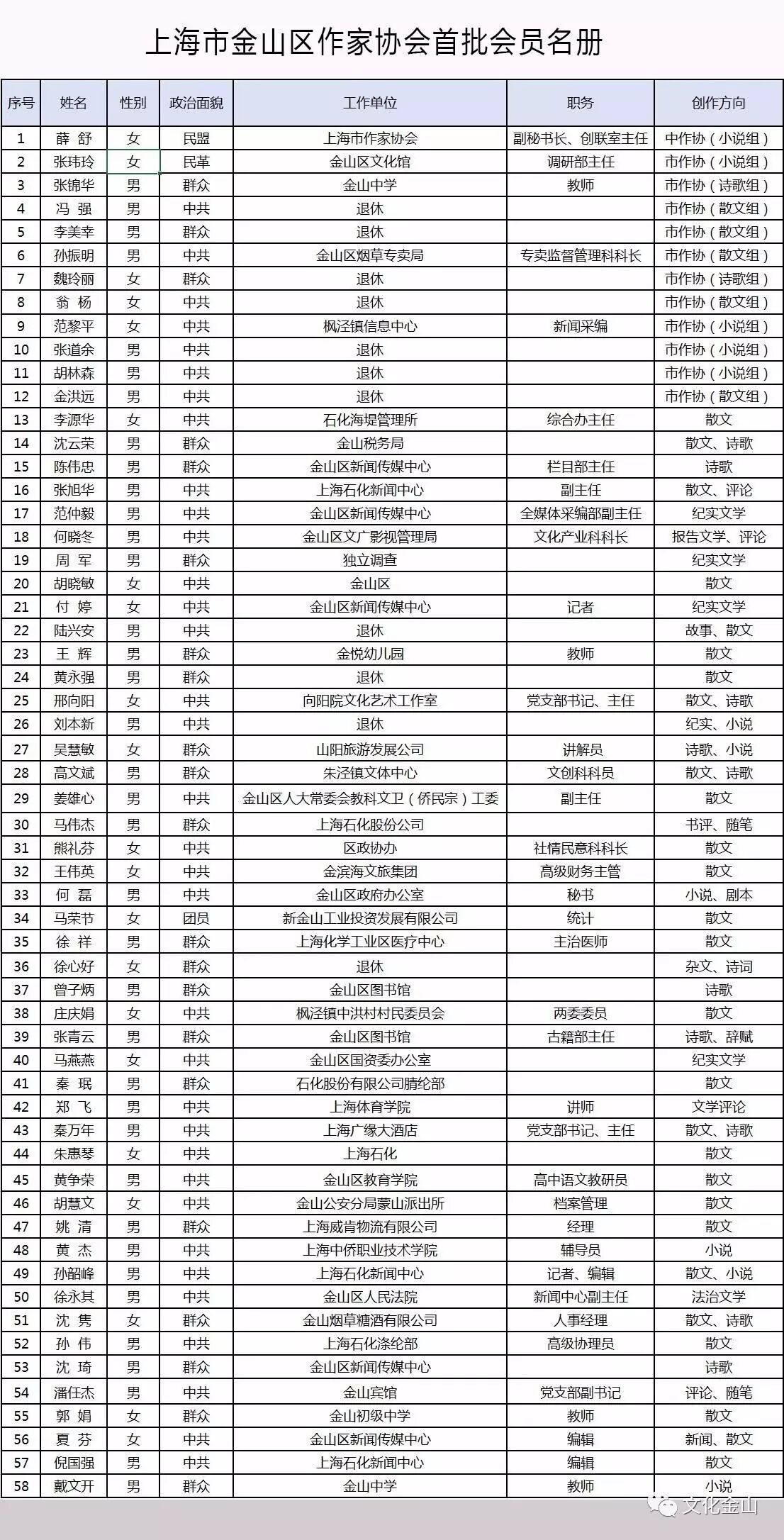 大会听取了薛舒同志代表筹备工作组所作金山区作家协会筹备工作报告,审议通过了《上海市金山区作家协会章程》。