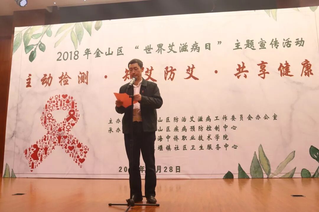 11月28日下午,2018年金山区“ 世界艾滋病日 ”主题宣传活动在我校举行。本次活动由金山区防治艾滋病工作委员会办公室主办,金山区疾病预防控制中心、上海中侨职业技术学院、金山区张堰镇社区卫生服务中心联合承办。 今年的12月1日是第31个“世界艾滋病日”,宣传主题是“主动检测,知爱防艾,共享健康”。艾滋病和身在象牙塔中的学生们似乎有很远的距离,但是数据显示:近十年来,我国青年学生(15-24岁)报告感染人数增长了5倍,从482例上升到3077例。形势非常严峻!因此,我们不能漠视艾滋病的存在,积极学习艾滋病防治知识和技能,因为危险时刻都在。 上海中侨职业技术学院校长陈晓斌致欢迎辞。陈校长指出,自2014年校区搬至金山区以来,中侨学院一直积极探索区校融合,如何更进一步做好区校联动也是需要我们进一步合作和探索的。中侨学院愿为大家敞开大门,为金山区建设“两区一堡”,推动金山服务长三角高质量一体化发展贡献青春力量。 金山区卫生计生委副主任吴靖平致开幕辞。吴靖平主任主要介绍了当前我国青年学生艾滋病疫情状况,以及金山区作为艾滋病综合防治示范区一直以来的工作进展,并对下一阶段的艾滋病防治的工作进行规划。 中侨“七彩民族”歌舞团为我们带来的民族舞表演,让大家感受到了异域风情、异样精彩。 每位艾滋病患者都需要得到我们的关怀,在我们看似简单的关怀,却可以给他们带来内心极大的慰藉,就像身处故乡一般温暖,欣赏吉他弹唱《故乡》,给观众心里带来了极大的慰藉。 欣赏完金山区疾控中心带来的小品《给我一个拥抱》之后原来社会对艾滋病病人有这么多的误解,不仅要忍受病魔的折磨,还要承受那么多人异样的目光。 下次我也要给他们一个拥抱。 一段实景录制的视频《只要你伸出双手,我都愿意》,看完这段视频不知道大家是什么样的感受。说实话,当小编看到这段视频里路人给与志愿者拥抱。 心中有泪光,拥抱就有力量。