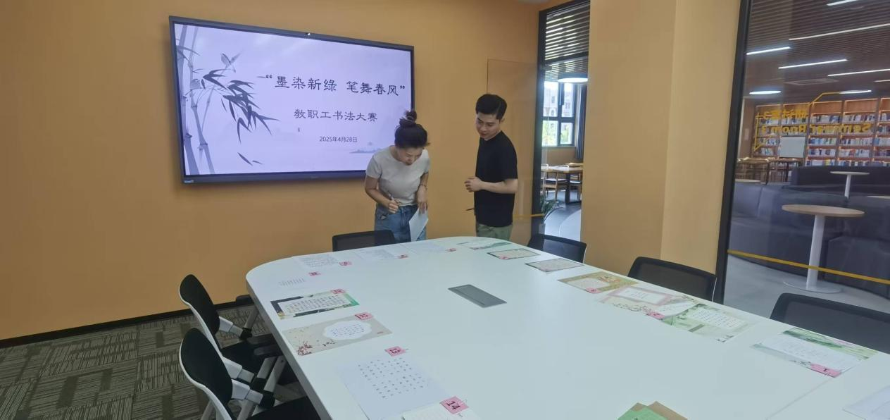 校语委特邀校领导成为评委团,从笔法、结构、章法及艺术表现力等维度对作品进行评分。参赛作品主题鲜明,既有经典诗词的笔墨再现,也有时代精神的创新表达。