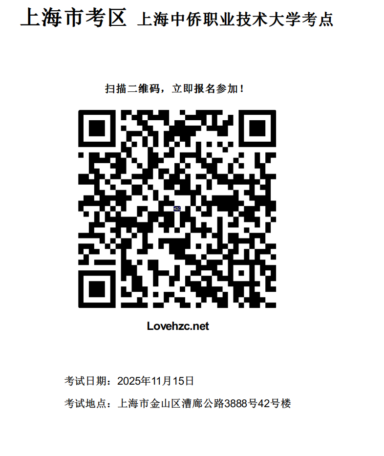 考生登录在线报名页面(https://lovehzc.net/),或扫描所属考点二维码进入本考点报名平台。进入后,根据系统提示完整填写个人信息并上传照片,核对信息无误后提交即可完成报名。